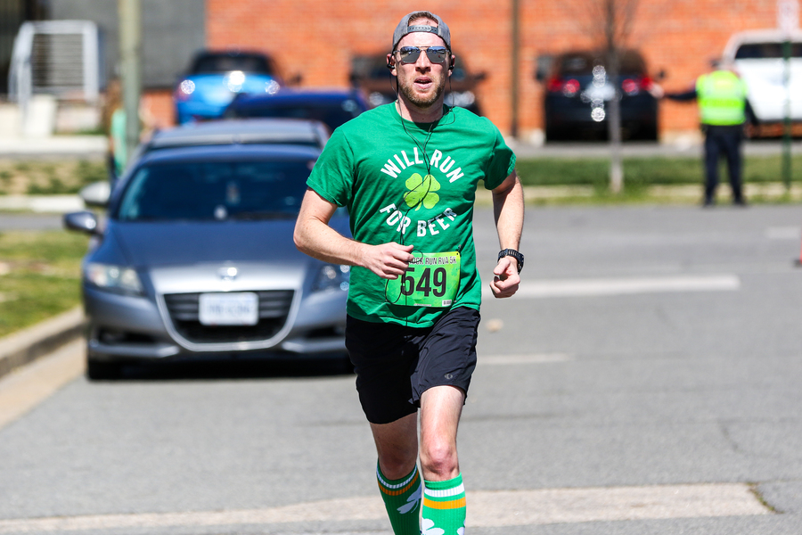 I was shooting for 1 minute or less in T2, and I really try to gain time on the field in transition. Every second counts in this race, and I wasn’t willing to waste time putting on socks. I swapped my bike shoes for my run shoes, and then grabbed my hat and race belt (with my bib). I put the race belt on during my run through the transition area and then headed out onto the run course.