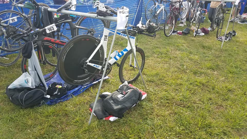 On the upside, I’d finally decided to upgrade my tri-bike over the winter, and I’d purchased a Cervelo P-Series to replace the old Cervelo P-2 that I’d been riding since 2016. This meant an upgrade from 10-speed to 11-speed, and going from rim brakes to disc brakes. Due to the winter weather and the issues outlined above though, I’d only ridden the new bike 0.6 miles before race day – and that was the day before the race just to make sure everything was working. They say “nothing new on race day,” but I was going to break that rule and hope for the best.