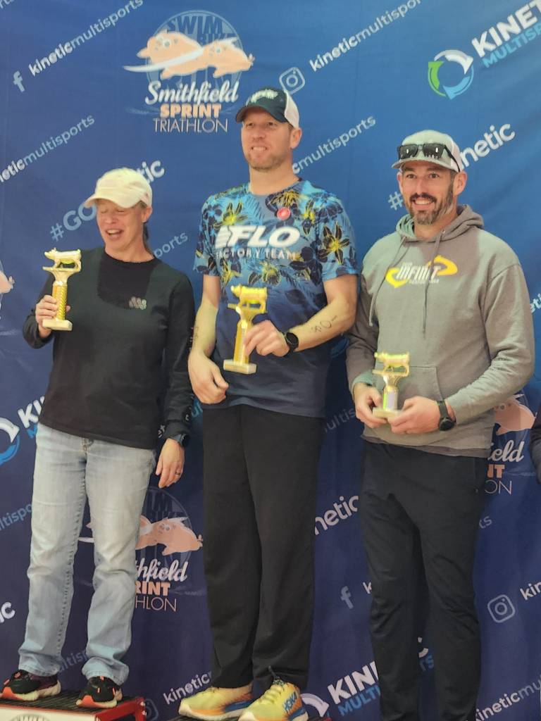 April 6, 2024 – Its become a recent routine for my tri seasons to start off with the Smithfield Sprint Triathlon, and 2024 was no different. Unfortunately, I hadn’t had the most productive offseason training period, so I felt a bit ill-prepared. First, I got roped into playing indoor soccer in a coed league at SCOR Richmond. I think I was the elder statesman of the league by about a decade, and trying to hang with 20 and 30-somethings left me pretty battered and beaten down for days after our games. That really cut into my ability to engage in swim/bike/run training.