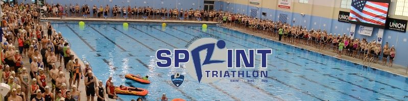 The RTC Sprint features a 400 meter “open water” pool swim. Its 8 lengths of the 50 meter pool, where you round buoys instead of touching the wall. Groups of 10 are started 1 minute apart, and your bib number is based upon your predicted swim time. Thus, bib 1 has the fasted predicted swim, and the first swim wave includes bibs 1-9. Bibs 10-19 start a minute later, and so on and so on.